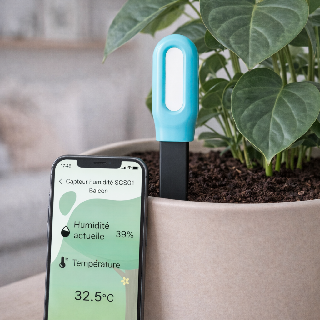Le capteur intelligent qui surveille l'humidité et la température de vos plantes 24h/24 – et vous alerte directement sur votre smartphone.